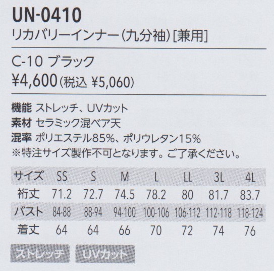 男女兼用/UN-0410/遠赤外線の働きで披露軽減をサポートするリカバリーウエア。